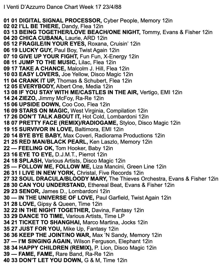 I Venti d’Azurro Italo Disco Chart 23rd April 1988