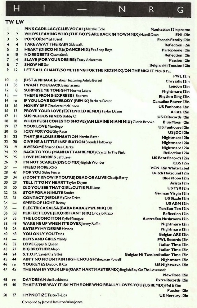 Record Mirror Hi-NRG Charts 1988