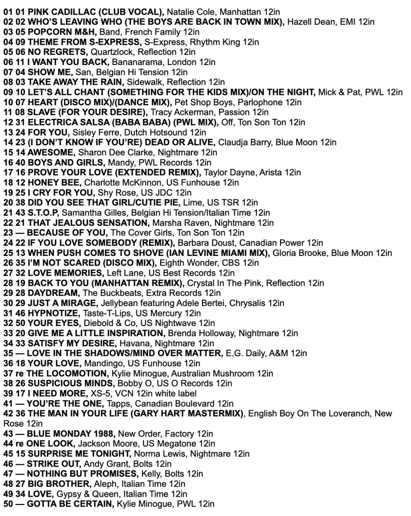 It didn’t enter the Record Mirror chart at all, either in 86 or in 89. It doesn’t appear in the Dance Music Report Hi-NRG Top 80 charts for 1986, 1987 or 1989 – although I can see it being quite a ‘Sleaze’/’Morning Music’ track.
