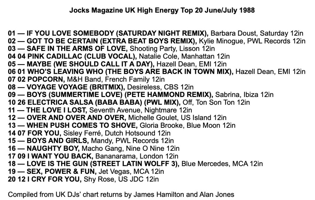 Jocks Magazine Hi-NRG Chart Summer 1988