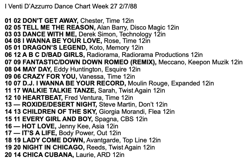 I Venti d’Azurro Italo Disco Chart 2nd July 1988