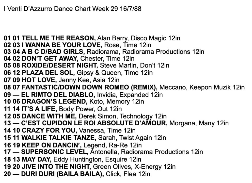 I Venti d’Azurro Italo Disco Chart 16th July 1988