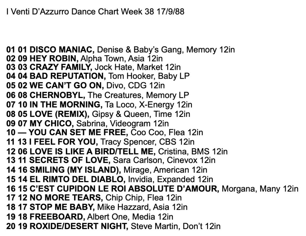 I Venti d’Azurro Italo Disco Chart 17th September 1988
