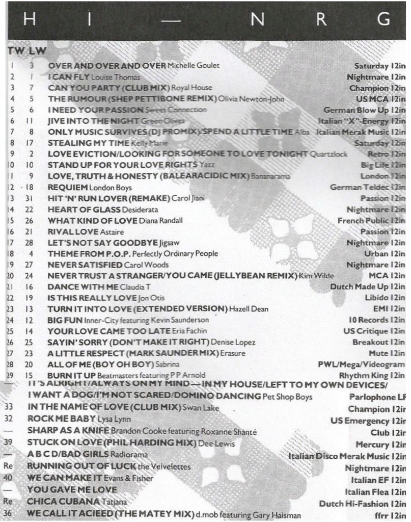 Record Mirror Hi-NRG Chart 19th November 1988
