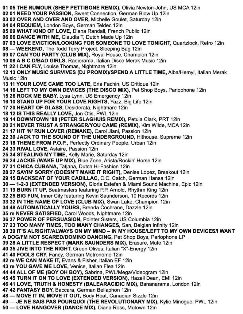 Record Mirror Hi-NRG Chart 3rd December 1988