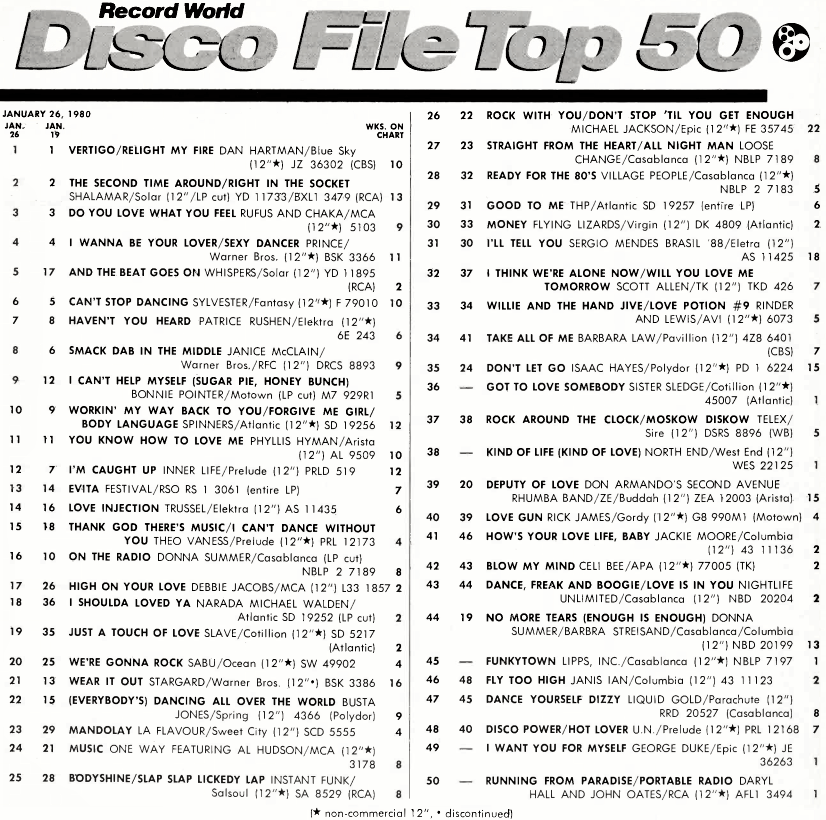 Record World Disco File Chart 26th January 1980