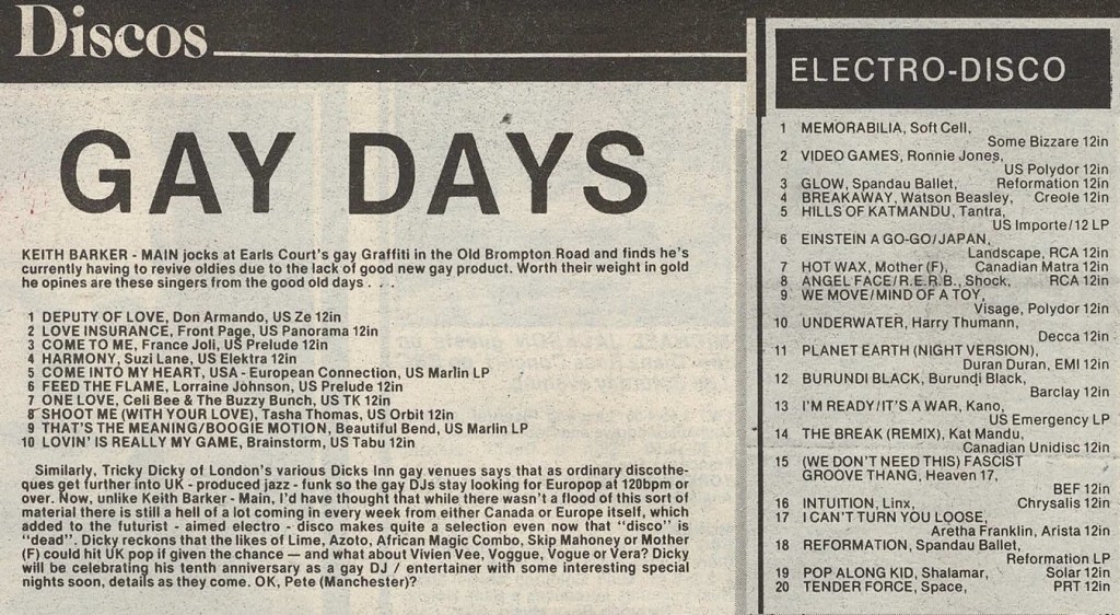 James Hamilton’s Disco Column in Record Mirror 2nd May 1981