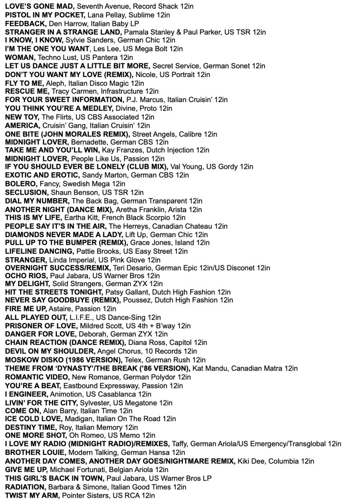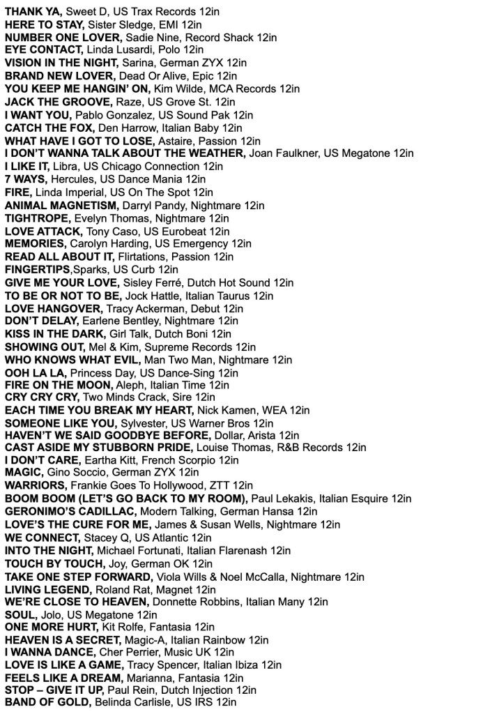 All the individual Record Mirror Eurobeat/Hi-NRG Disco Charts for 1986 can be found on this page:
