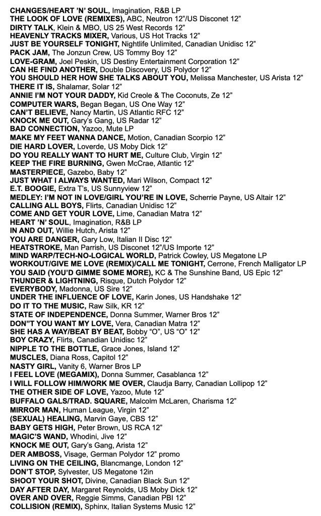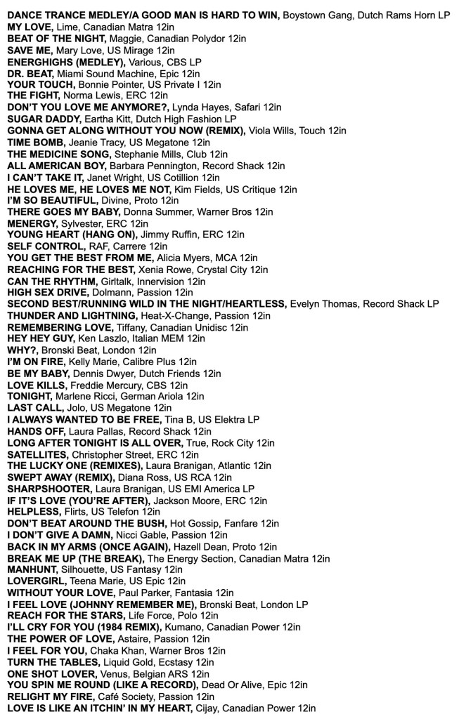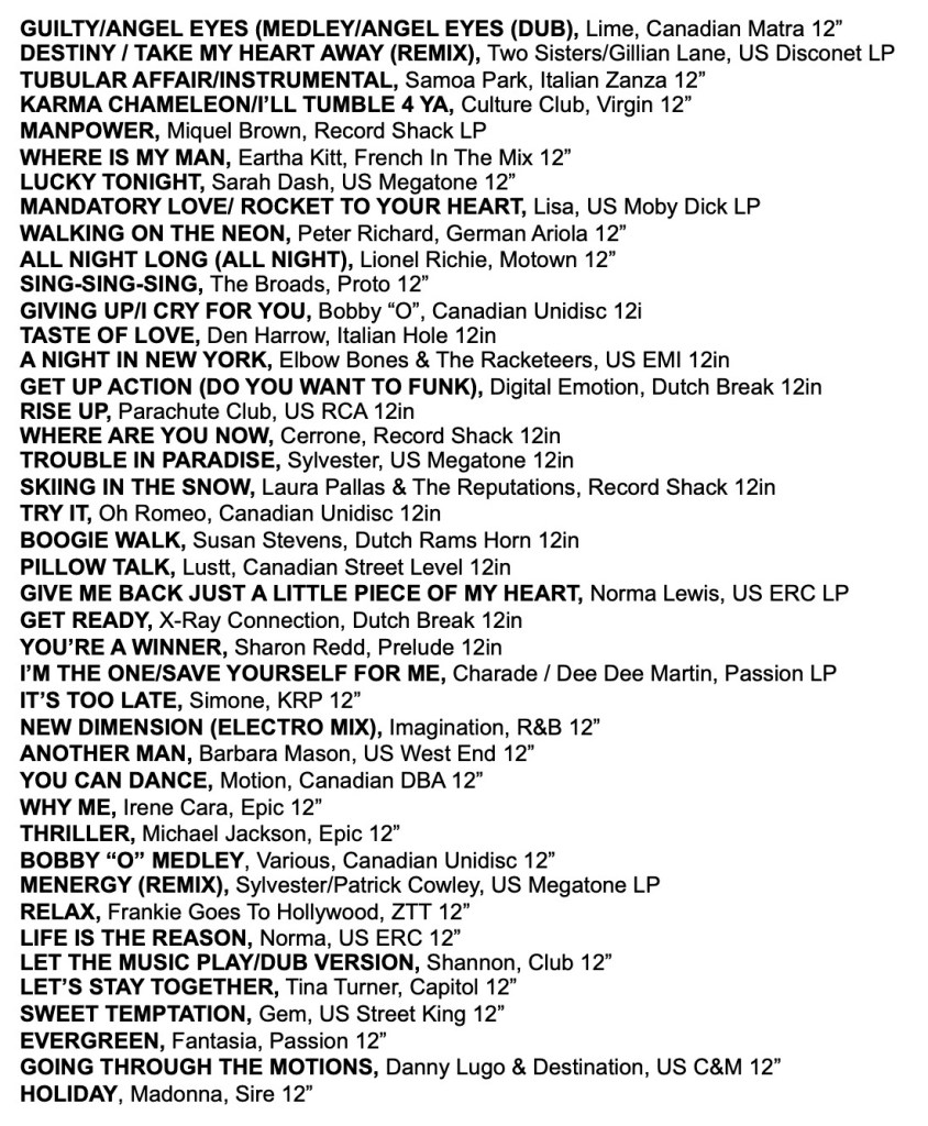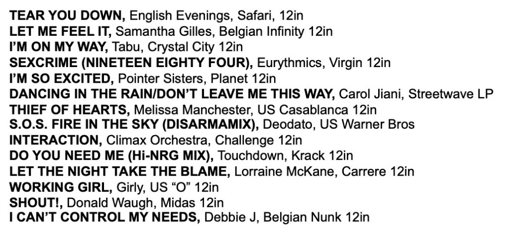All the individual Record Mirror Hi-NRG Disco Charts for 1984 can be found on this page: