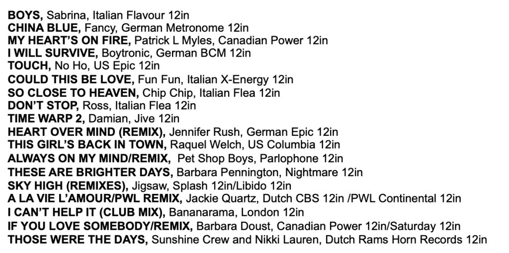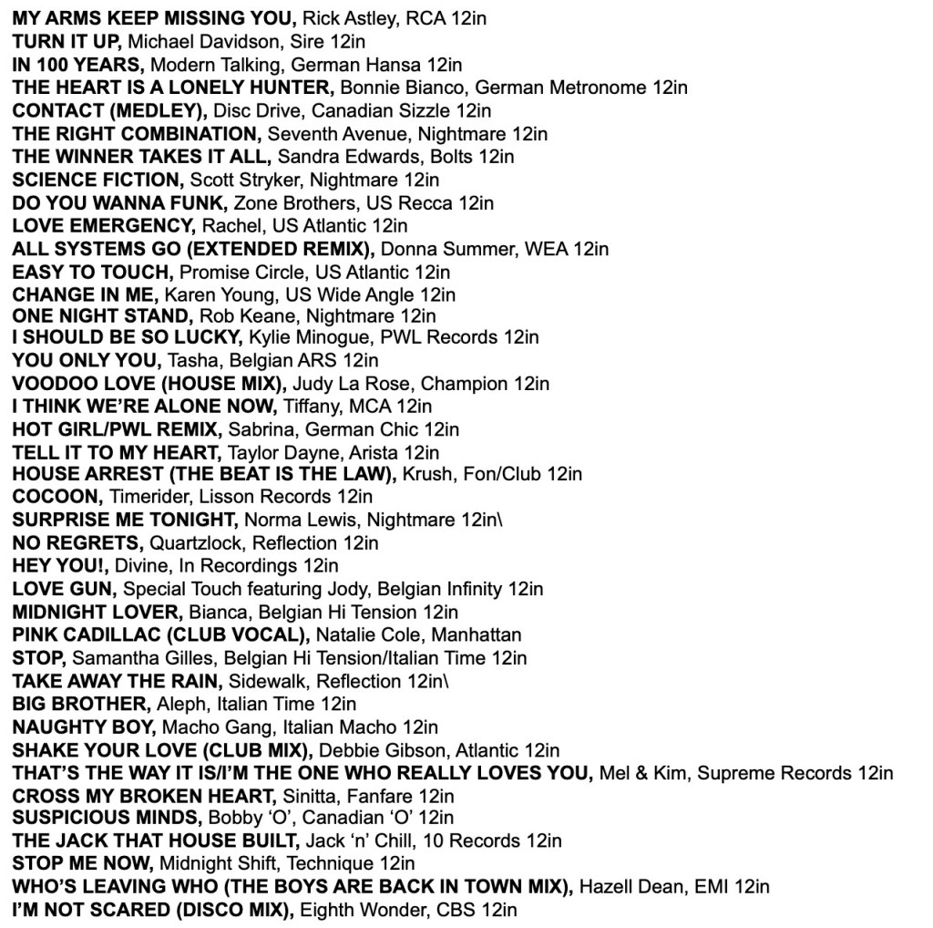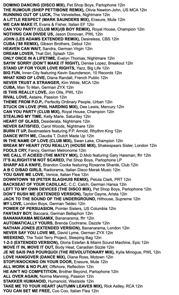 All the individual Record Mirror Hi-NRG Disco Charts for 1988 can be found on this page: